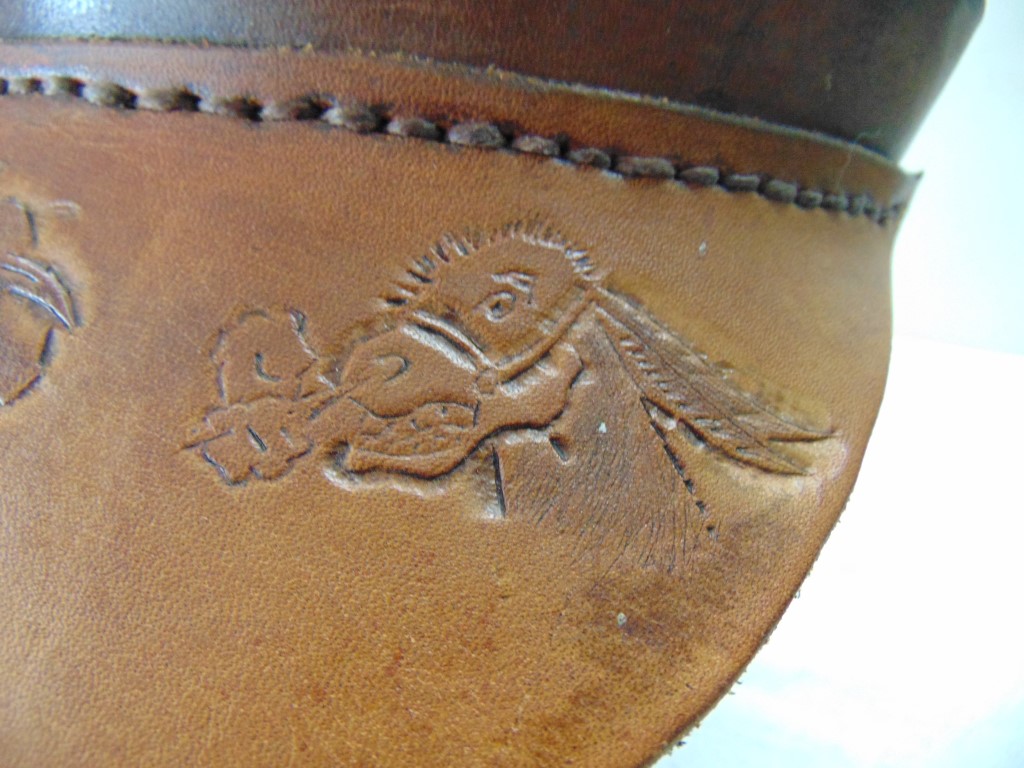 H129 size adjustable 7, 7 1/4, 7 3/8 Tooled Leather Political Party Squirrel, Republican and Democrat Visor $50