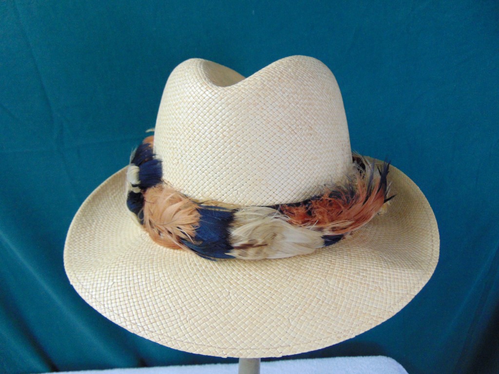 H61 Vintage Hat size (7) front to back 7 3/4in. side to side 6 1/2in. Brim 2 1/2in. Crown 4in. $50