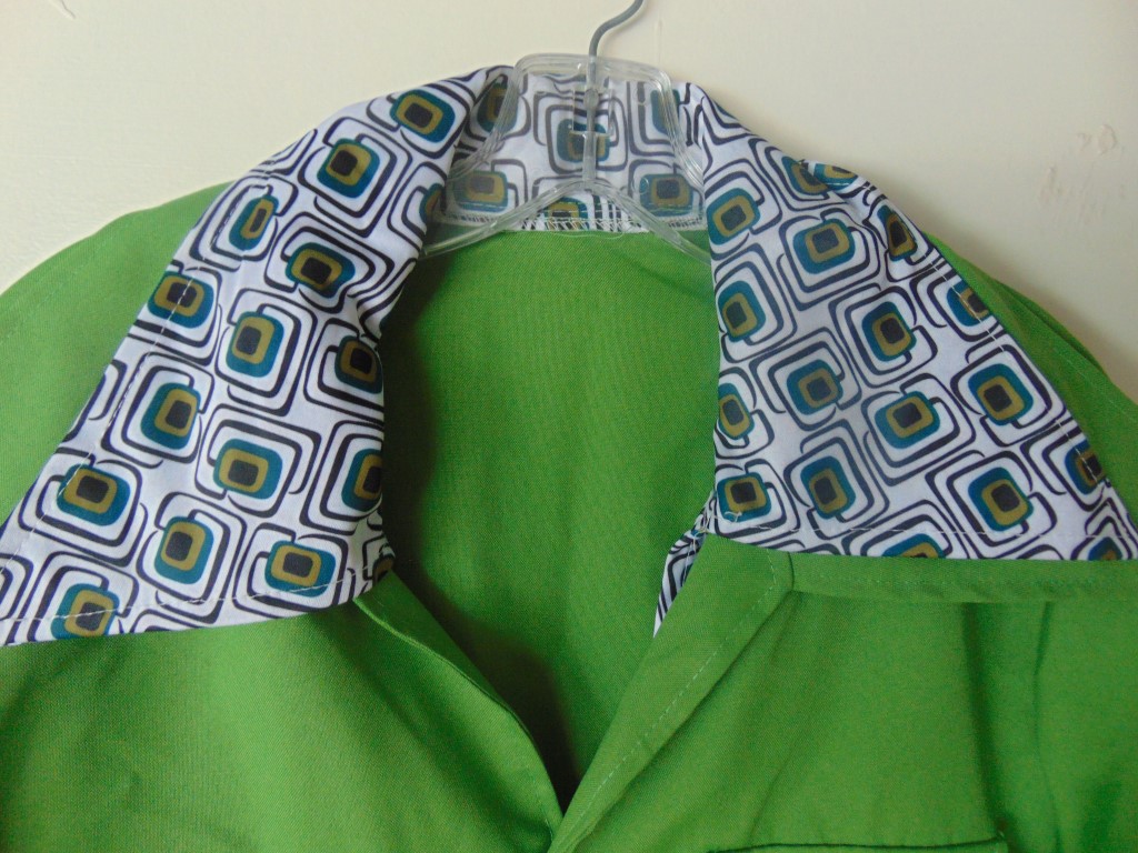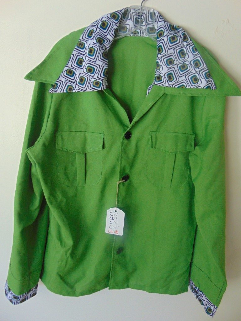 l7s48 1970’s Lime Green Costume? poly or nylon vintage shirt L $40
