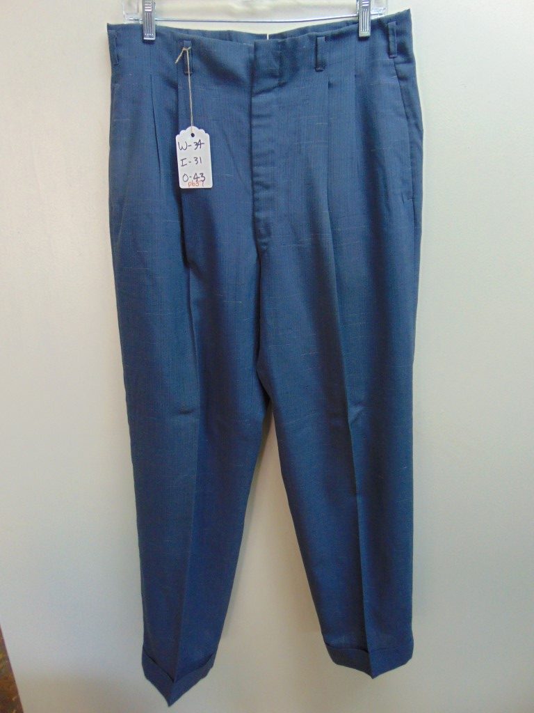 pb37 1940-50’s Blue Atomic Drop loop/Hollywood waist light weight Vintage Slacks W34 $180