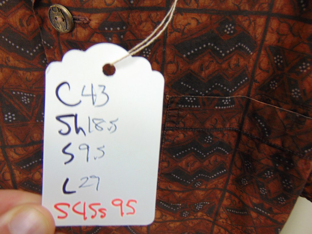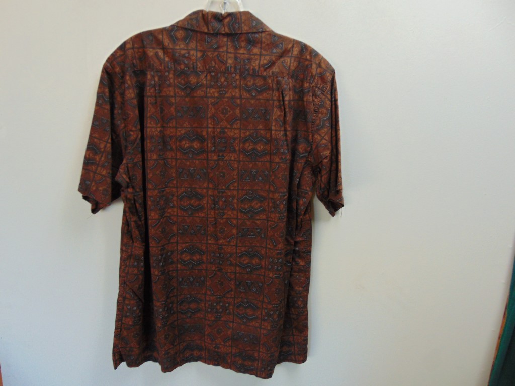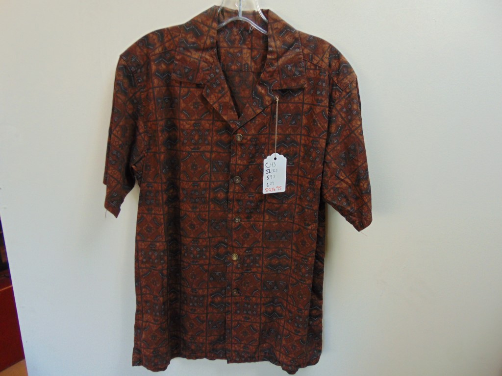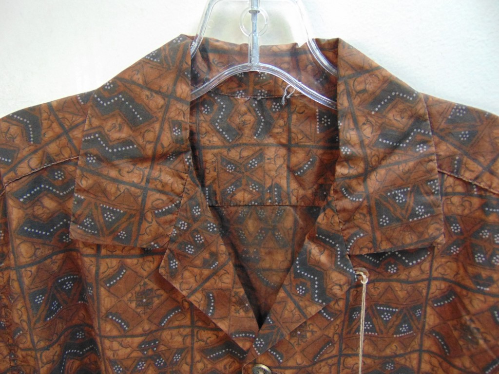 s45s95 1950’s Brown Tapa print cotton vintage shirt Chest size 43 inches $50