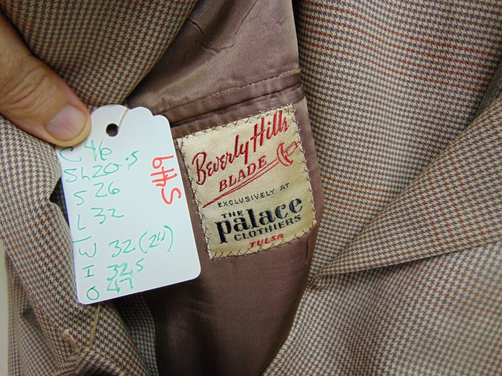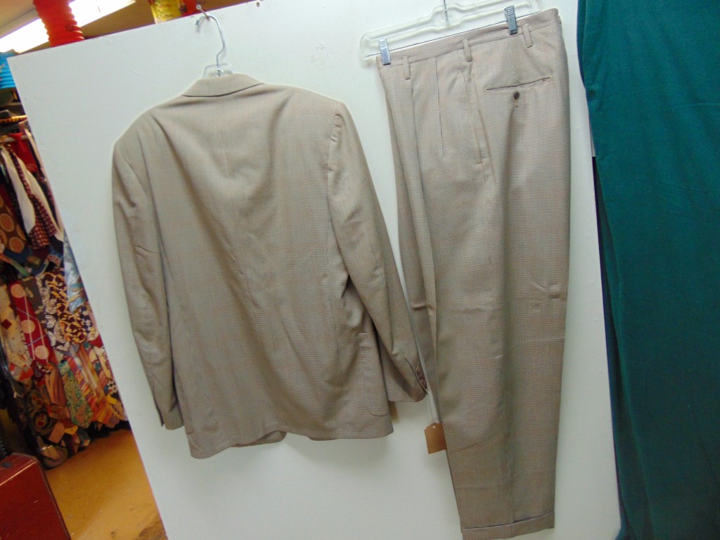 s4t9 1940’s Vintage Check Single Breasted Wool Gabardine heavy weight suit Chest size 46 inches $250