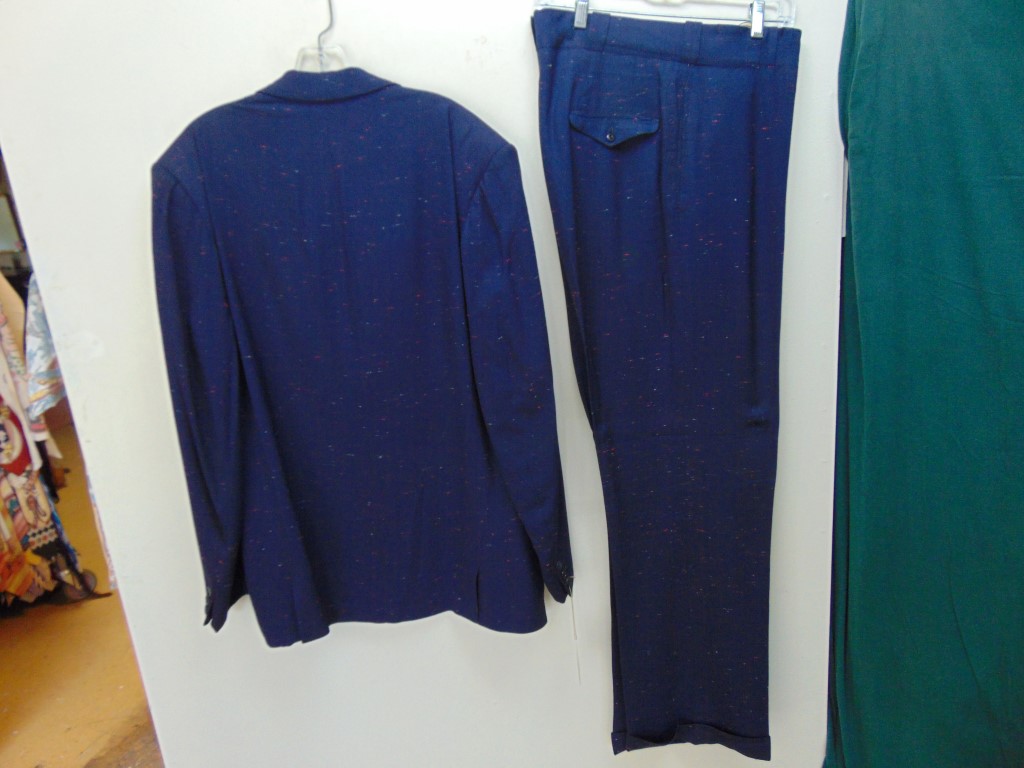 s5t78 1950’s Purple W/ Red Snowflake design Rayon Gabardine Single Breasted medium weight Vintage suit Chest size 48 inches $600