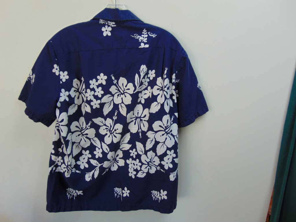 s67h174 1960’s Hibiscus Plumeria Border cotton vintage Hawaiian shirt Chest size 44 inches $30