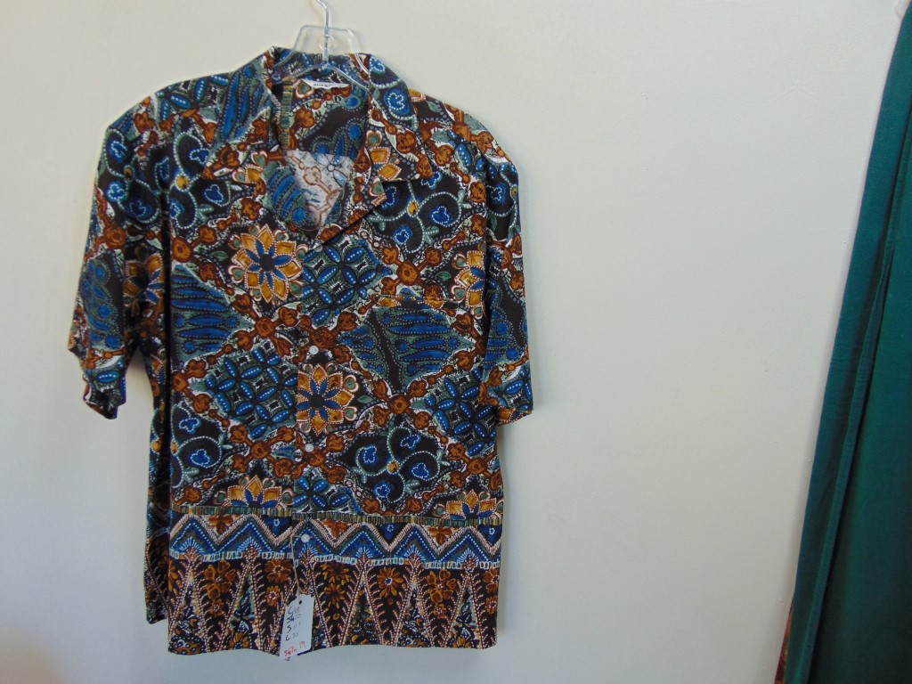 s67h19 1960’s Tapa Border cotton vintage Hawaiian shirt Chest size 48 inches $20
