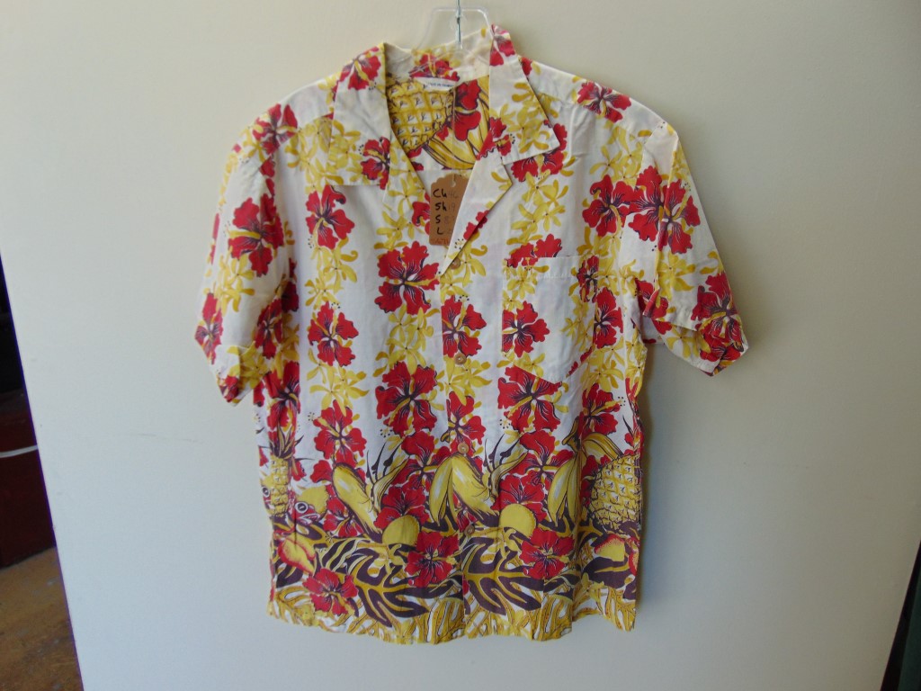 s67h200 1960’s Tropical Fruit Border Print cotton vintage Hawaiian shirt Chest size 46 inches $40
