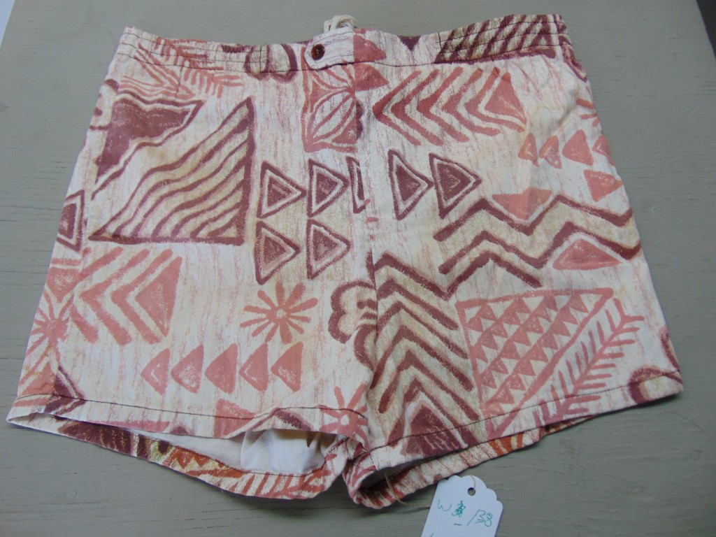 sws5 1960’s Vintage Tapa design Swim Shorts $25 Waist 38in. Length 15 1/2in.