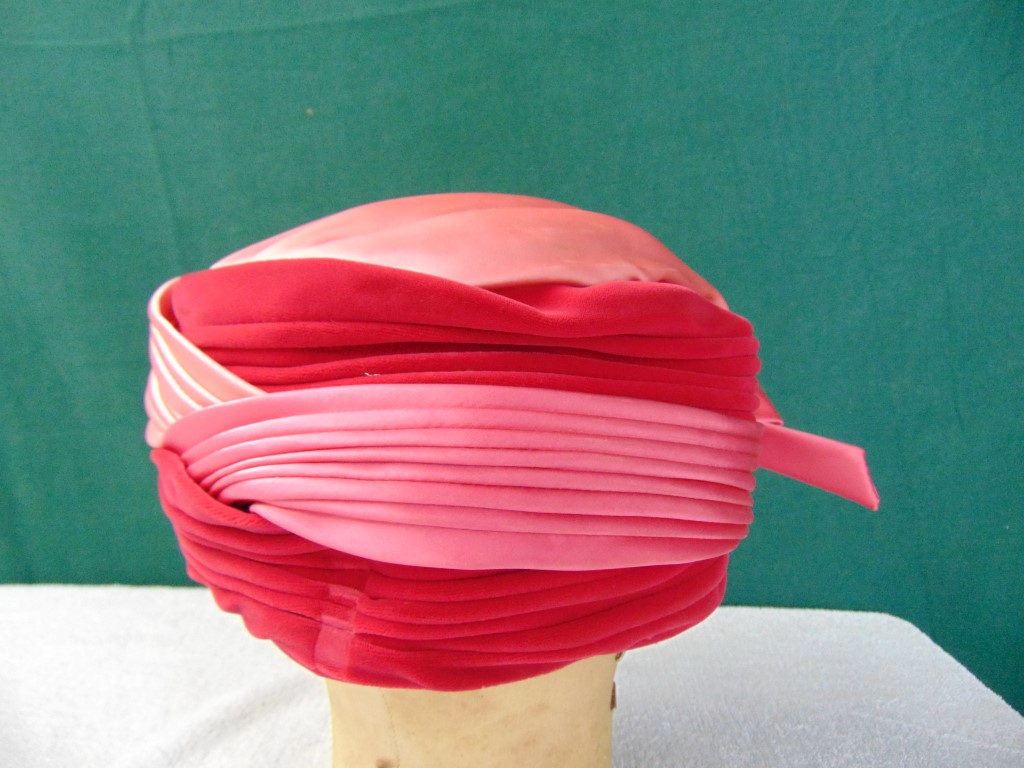 wh23 Vintage Womans Hat size (est.7 1/8) front to back 7 1/4in. side to side 7in. Brim in. Crown 6in. $20